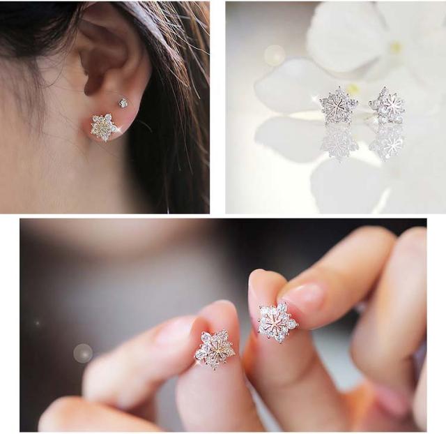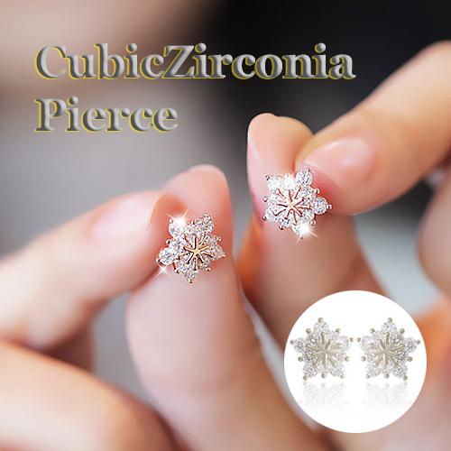ピアス 送料無料 レディース 人気の キラキラ CZダイヤ 雪の結晶 キャッチピアス アクセサリー ポイント消化