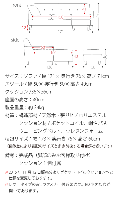 - 商品の見た目や座り心地は良く、色も写真よりあまり濃くないベージュで良かったです。 しかし…座面裏に裏地を貼り付けた際の細い針状の金具(かなり長い)が飛び出ていて梱包を開ける手伝いをしてくれた息子の手指3本が切れて出血した事と、ソファーに座って左側の肘掛け横部分に、拳大の凹みがあって カウチの単品土台の中にプラスチックか何かが砕けたような傾けるとチャラチャラと音がする物が入っていて無気味です。間違えて返品された商品を発送してしまったとしか思えません。 取り敢えずポイント使って安く買えたのでこのまま使用しますが、本来なら返品物です。 訳ありならアウトレット商品として欠陥部分を説明した上で出した方が良いと思います。 それが無かったら☆5でした。とても残念です。