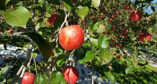 葉摘みりんごは真っ赤で見た目が美しく、贈答用にピッタリ。 |