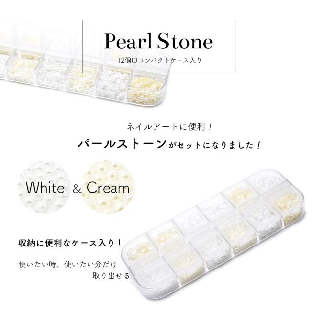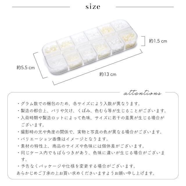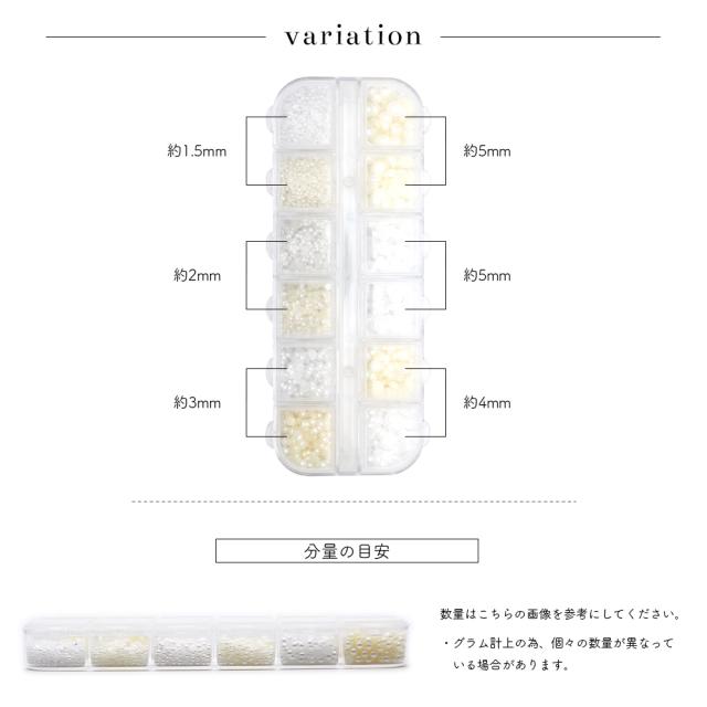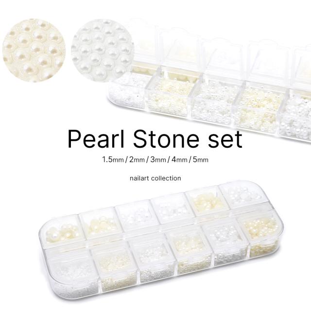 パールストーン ネイルパーツセット 1.5mm〜5mm(ホワイト/クリーム) 12個口ケース入り