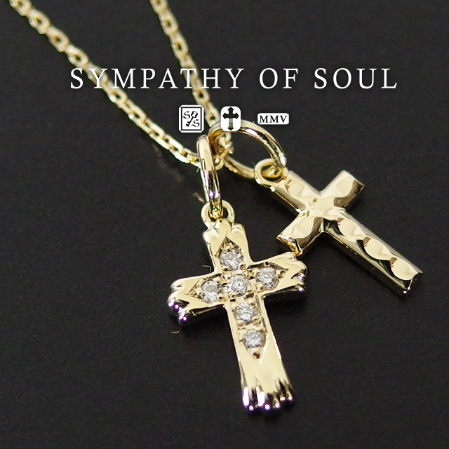 【2017年 クリスマスモデル】 シンパシーオブソウル sympathy of soul ダブルクロスネックレス - K18イエローゴールド w/ダイヤモンド (18金 ゴールド ネックレス クロス メンズ レディース シンプル ペンダント) シンパシー オブ ソウル