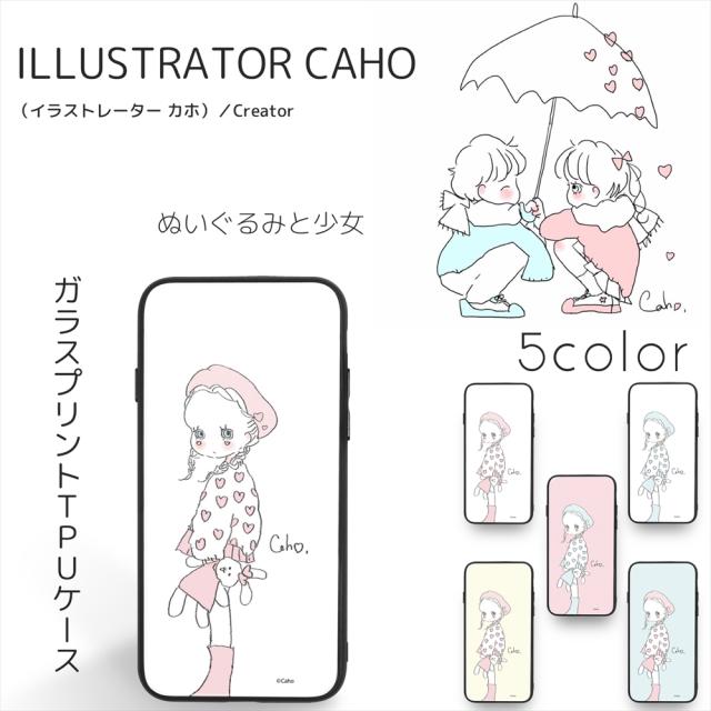 Caho ガラス プリント TPU / ぬいぐるみと少女 スマホケース カバー iPhone12 iPhone11 iPhoneSE 第3世代 スマホカバー 携帯 ケース カバー