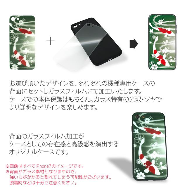 ・このケースの最大の特徴は、背面にセットできるガラスフィルムにUVプリントでデザイン・イラストを印刷しております。