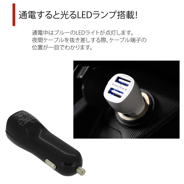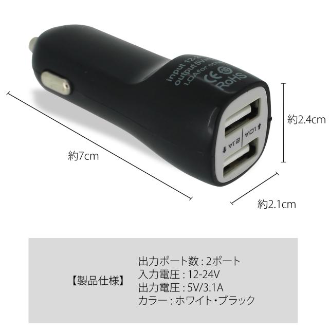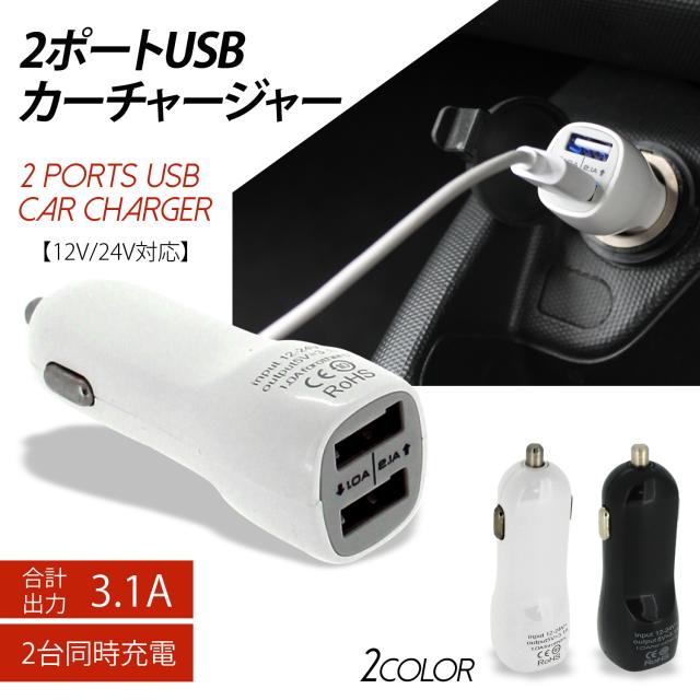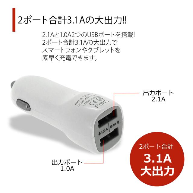 カーチャージャー USB スマホ 急速充電 充電 車載 3.1A カーシガー 2ポート 2台 同時充電 2.1A シガーソケット