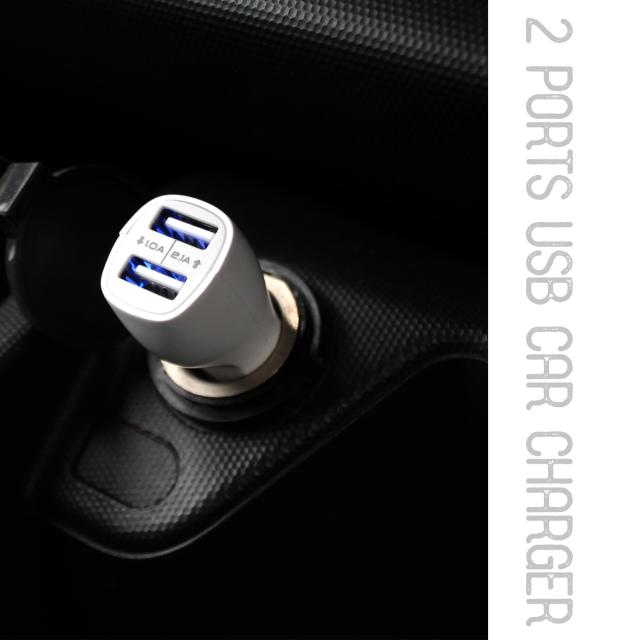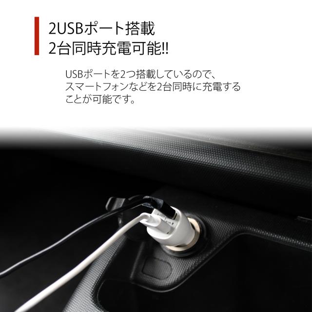 ・2.1Aと1.0AのUSBポート搭載で2台同時充電も可能となり、家族でのドライブや旅行にもおすすめです。