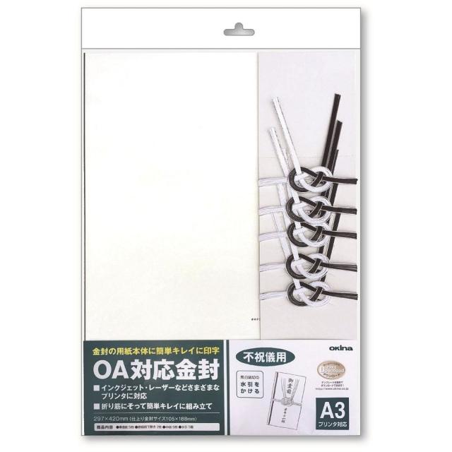 (まとめ買い)オキナ 不祝儀袋 金封 プリンタ対応 A3 不祝儀用 黒白 結切 5枚入 CK60N 〔×3〕 【北海道・沖縄・離島配送不可】