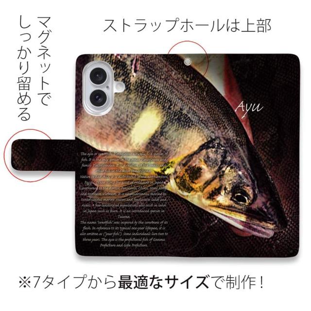 スマホケース 手帳型 カード収納 マグネット iPhone17 Pro Max iPhone Air iPhone16e iPhone16 Pro Max 16 Plus 15 Pro Max Xperia 10 VII Galaxy AQUOS ARROWS Pixel10 XL 釣り 魚 ルアー 鮎(アユ)の追い星