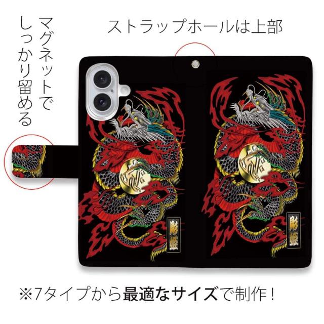 スマホケース 手帳型 カード収納 マグネット iPhone17 Pro Max iPhone Air iPhone16e iPhone16 Pro Max 16 Plus 15 Pro Max Xperia 10 VII Galaxy AQUOS ARROWS Pixel10 XL 入れ墨 刺青 タトゥー 和柄 彫姫 龍 和彫りデザイン