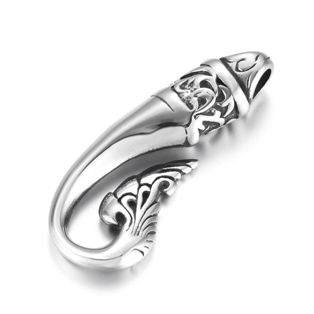 4mmの太さの皮紐レザーのブレスレットやネックレスチョーカーの留具に使うサージカルステンレス316L製のエンドパーツ。 革紐を巻き付けてS字フックになった部分に皮ひもを引っかけて止具にするお洒落なステンレス製クラフトパーツです。 素材も安心のサージカルステンレス316L製でカワヒモとの相性もばっちり。男性からも女性からも人気の魚のシッポとトライバルをモチーフにしたカッコいい留め金パーツです。 DIYやハンドメイドが好きな彼氏や彼女に別売りの皮紐と留具をセットでプレゼントしても! もちろん自分で作ってクリスマスや誕生日ギフトにオススメ。 メンズでもレディースでも使えるのでペアルックにも最適のステンレス製エンドパーツ。 デザインがかっこいいので、ブレスレットやバングル、ネックレスやチョーカーのチャームやペンダントトップとしても使える。 修理やカスタムメイドする金具にも使えるハンドメイド部品です。