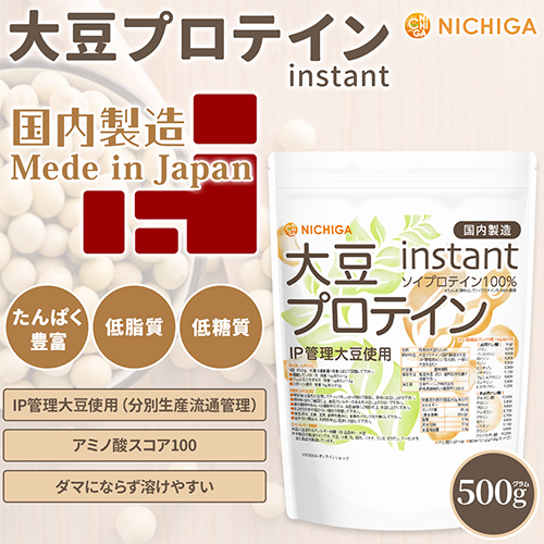 大豆プロテイン instant(国内製造) 500g 【メール便専用品】【送料無料】 IP管理大豆使用 ソイプロテイン100% 甘味料無添加 [05] NICHIGA(ニチガ)