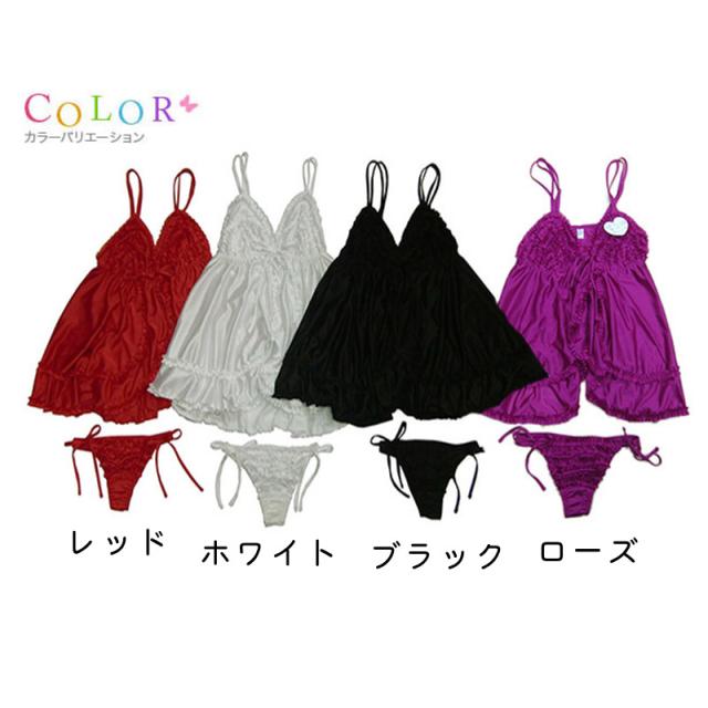 フリルデザインの脇紐Tバック、選べる4色展開のかわいいベビードール