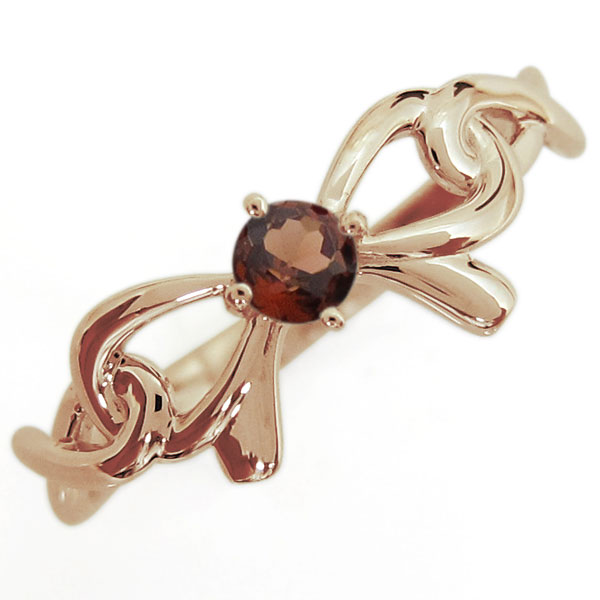ガーネット 指輪 縁結びリング K10 リボンリング レディース