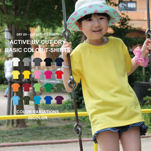 Tシャツ ドライTシャツ!ベーシックな20カラーとUVカットのキッズサイズの吸汗速乾Tシャツ(120cm〜150cm)