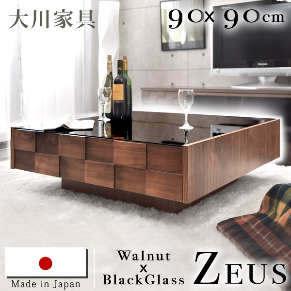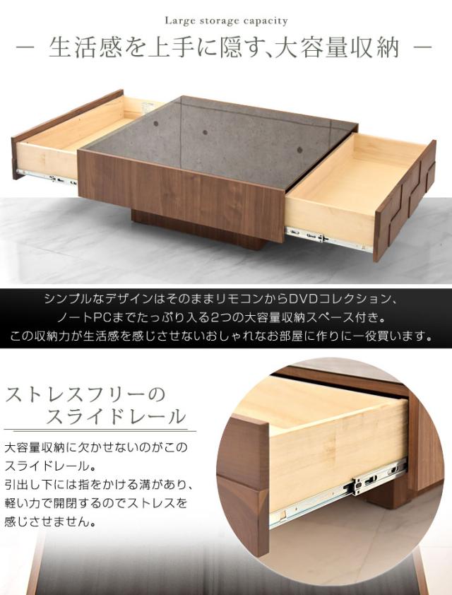 センターテーブル 完成品 日本製 ウォールナット テーブル リビングテーブル ローテーブル 無垢材使用 高級感 引き出し ガラス天板 木製 北欧 モダン 収納 国産 正方形 無垢 ガラス ウォルナット [超大型商品]