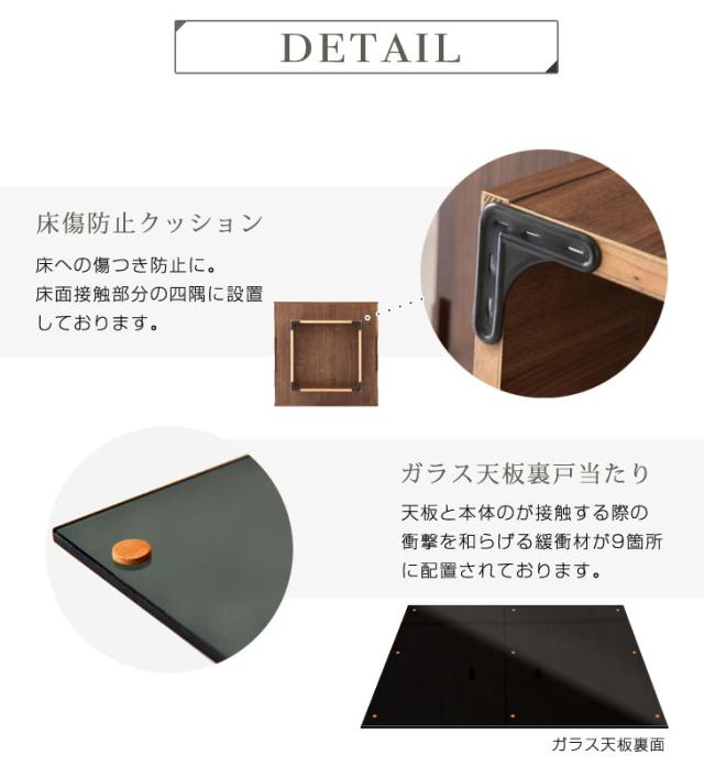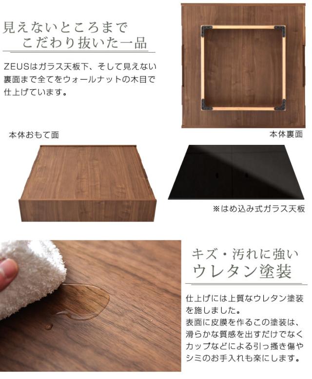 日本製 センターテーブル ウォールナット 無垢材使用 完成品 ガラス天板 木製 北欧 モダン カフェ テーブル リビングテーブル ローテーブル 収納 国産 正方形 コーヒーテーブル ガラス