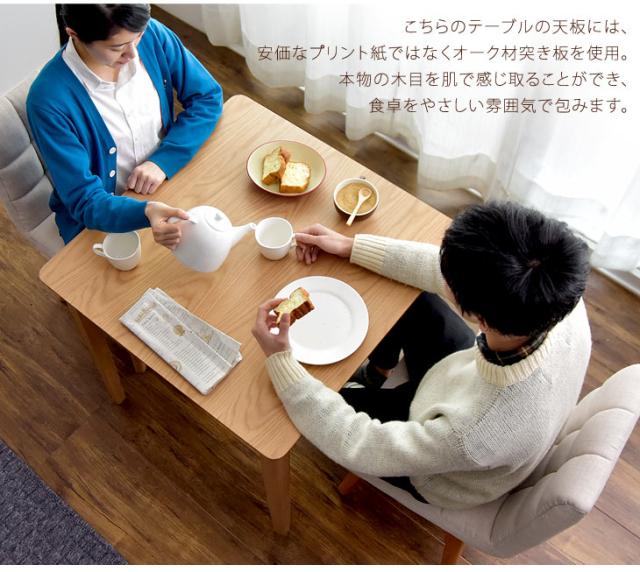| 素材 | 天板:天然木化粧繊維板(オーク材)・ウレタン樹脂塗装 脚部:ラバーウッド(ラッカー塗装) | |