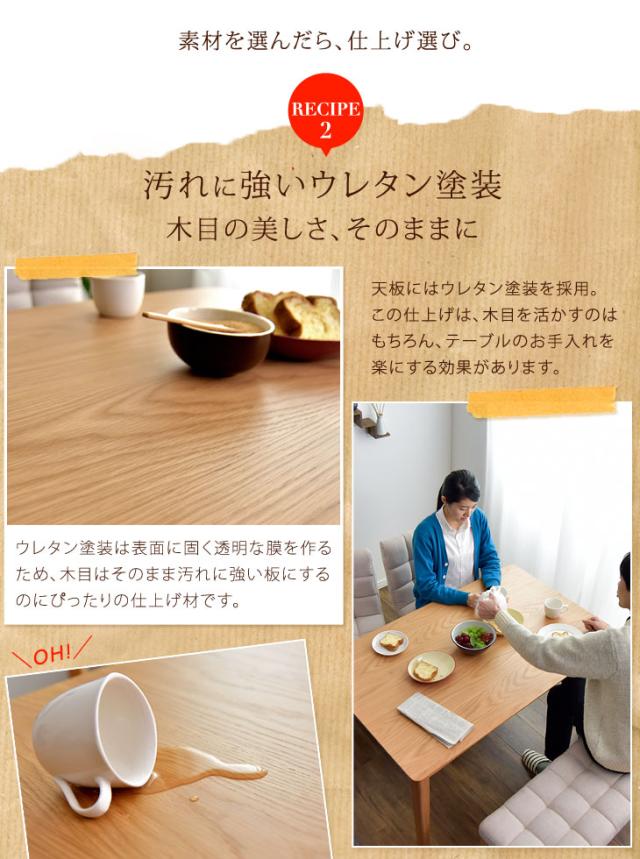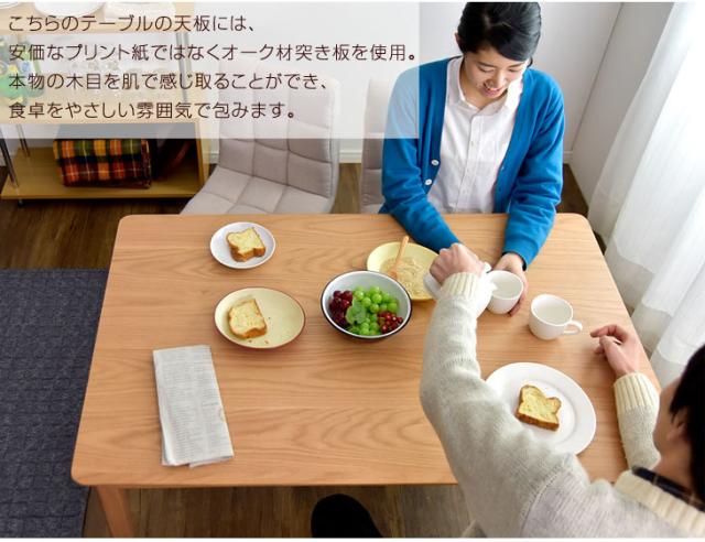 | 素材 | 天板:天然木化粧繊維板(オーク材)、ウレタン樹脂塗装 脚部:ラバーウッド(ラッカー塗装) | |