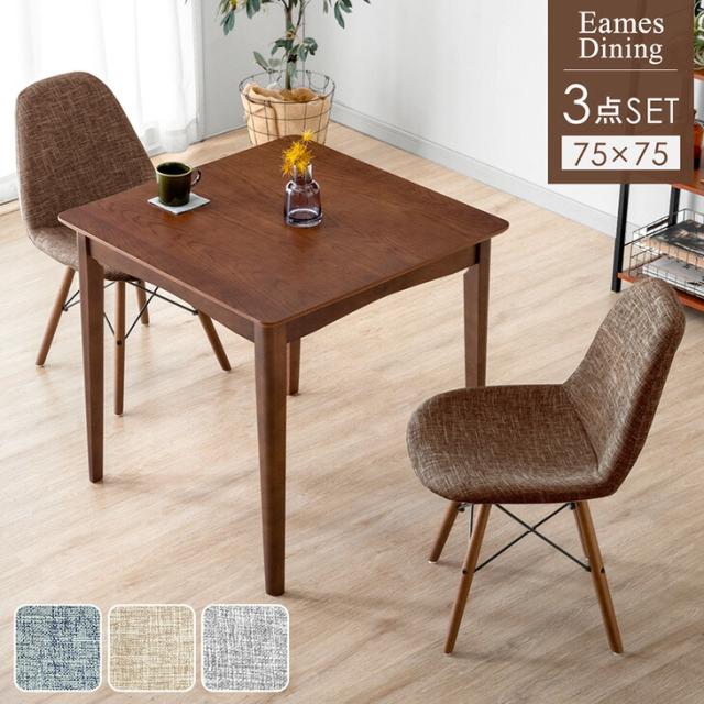 ダイニングテーブルセット 3点 2人用 75cm ダイニングテーブル チェア セット 天然木 ダイニング テーブル 木製 木目 食卓テーブル ダイニングセット カントリー イームズ 木脚 木足 北欧 おしゃれ ミッドセンチュリー モダン