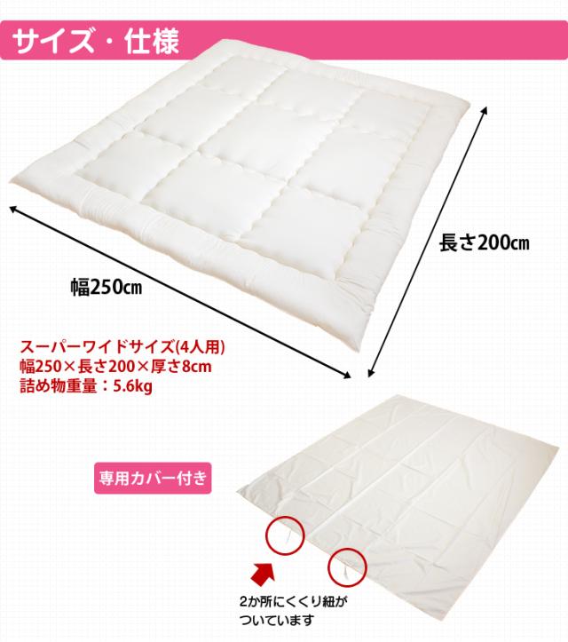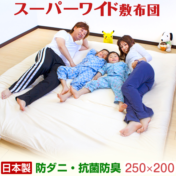 【正午〜P5%還元】 敷き布団 日本製 スーパーワイド 敷布団 250×200 敷き布団 敷布団 ファミリータイプ 敷き布団 布団 カバー付き 防ダニ 抗菌 防臭 敷きふとん 敷きぶとん 敷ふとん 国産 敷き布団 しき布団