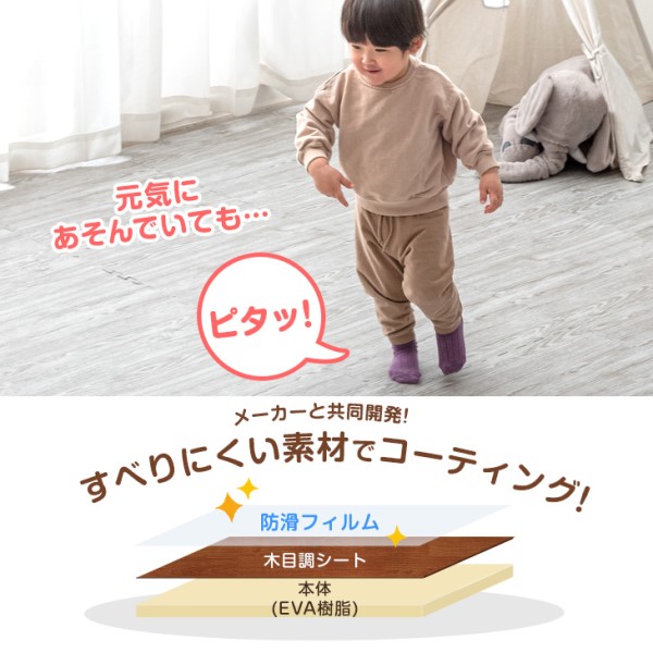 靴下でも滑りにくい 木目調 大判 ジョイントマット 64枚 12畳 木目 大判 61cm すべりにくい 滑りにくい ジョイント マット 赤ちゃん ベビー 防音【商品番号:18700044】