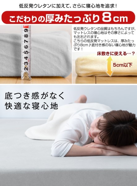 - 低反発8?は二度めです。 前のは古くなってヘタってきたので購入しました。 使ってみて全然問題なしです。
