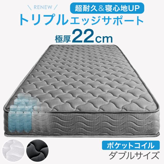 マットレス ダブル ポケットマットレス ポケットコイル コイルマットレス ベットマット エッジサポート ベッドマットレス ベッド 白 黒 ブラック ホワイト グレー 送料無料 【商品番号:17800008】