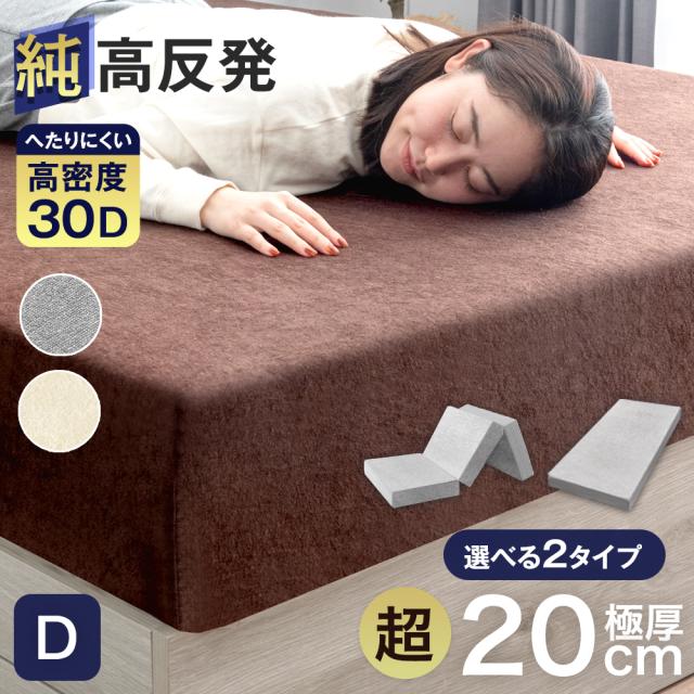 超極厚20cm 「純」高反発(R) マットレス ダブル 三つ折り or 一体型 へたりにくい 高密度30D 硬め 230N 安心エコテックス 超低ホル 高反発マットレス 20cm厚 高反発マット 折りたたみ 折り畳み ダブルマットレス 洗える カバー
