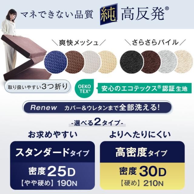 【年間ランキング1位!マネできない純高反発】 全部洗える マットレス シングル 三つ折り 高反発 洗えるカバー 軽量 マットレス 三つ折り 厚み 10cm 安心エコテックス生地 メッシュ パイル生地 超低ホル 190N シングルマットレス 高反発
