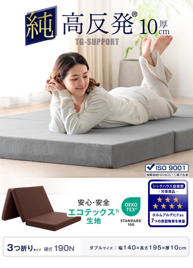 高反発マットレス 3つ折り 10cm ダブル 厚生省安全基準 マットレス 高反発 エコテックス生地 高反発マット 三つ折り マット 折りたたみ 敷き布団 敷布団 布団 超低ホル メッシュ パイル