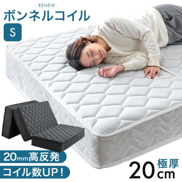 RENEW コイル数UP 高密度 三つ折り マットレス シングル ボンネルコイル 通気性 高反発 ウレタン 三つ折りマットレス ボンネルコイルマットレス コイルマットレス スプリングマットレス ベッド マット 3つ折り 折りたたみ 硬め