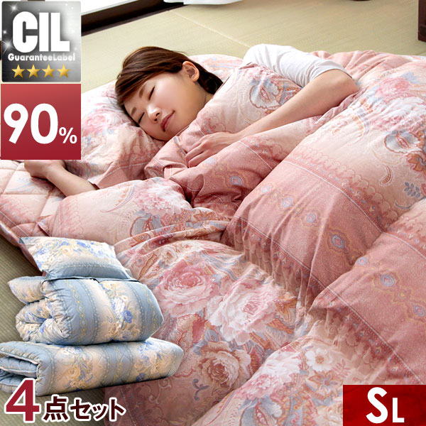 羽毛布団セット シングル 4点 セット 日本製 新基準350dp以上 CILシルバーラベル 羽毛布団 抗菌 消臭 ホワイトダウン 90% 枕 敷き布団 敷布団 布団セット 国産 組布団