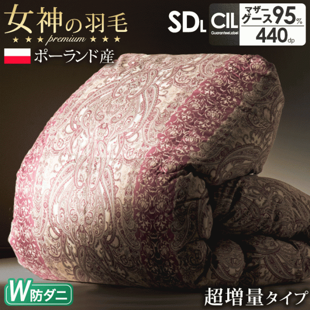 羽毛布団 セミダブル ロング 掛け布団 日本製 増量1.6kg 純ポーランド産 マザーグース 7年保証 440dp以上 ホワイトグースダウン 95% 国産 CIL ブラックラベル 抗菌 消臭 かさ高180mm以上 掛布団 あったか 冬