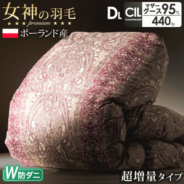 羽毛布団 ダブル ロング 掛け布団 日本製 超増量1.8kg ポーランド産 マザーグース 7年保証 440dp以上 ホワイトグースダウン 95% 国産 CILブラックラベル 抗菌 消臭 かさ高180mm以上 掛け布団 羽毛掛け布団 あったか 冬