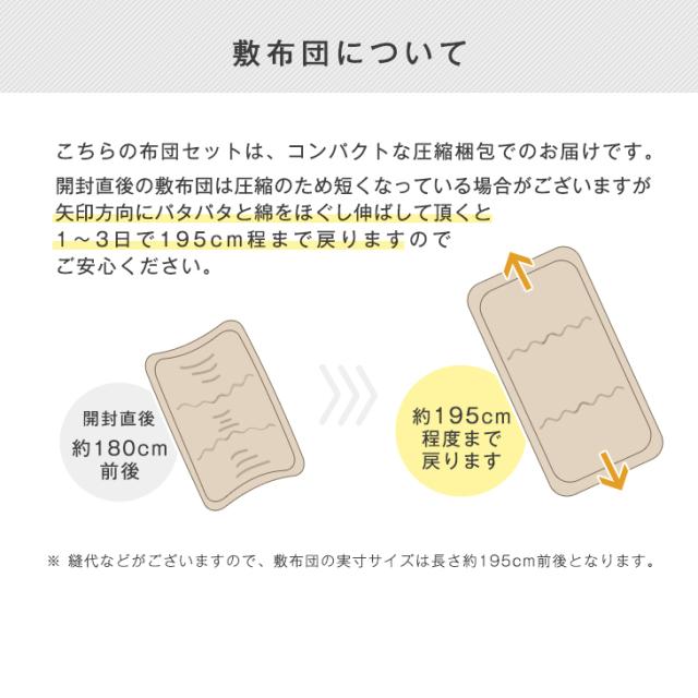 - 急遽娘の布団が必要になり、調べて購入させて頂きました。 サイズも色も気に入ってくれてます。 仕事柄体力を使う為ゆったりと寝れる言っています。 ありがとうございました?
