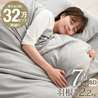[即納] 【累計36万set突破】 布団セット セミダブル 7点 セット 首元まで暖か襟丸 超増量 2.2kg 抗菌 防臭 ボリューム 羽根布団セット 敷き布団 敷布団 フェザー100% 布団 ふとん ふとんセット 掛布団 掛け布団 枕 組布団 寝具セット