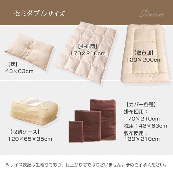 布団セット セミダブル 7点セット 襟丸 抗菌 防臭 ボリューム 羽根布団 敷布団 収納ケース 洗えるカバー付 布団 組布団 寝具セット お布団セット セット寝具 ふとん 掛け布団 枕