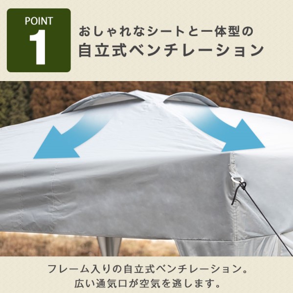 タープテント 2m 1年保証 ワンタッチ タープ ベンチレーション 収納バッグ UV 耐水 高さ3段階 テント ワンタッチタープ ワンタッチタープ テント ワンタッチテント 大型 2m×2m バーベキュー キャンプ アウトドア レジャー ベージュ グレー おしゃれ 【商品番号:19000026】