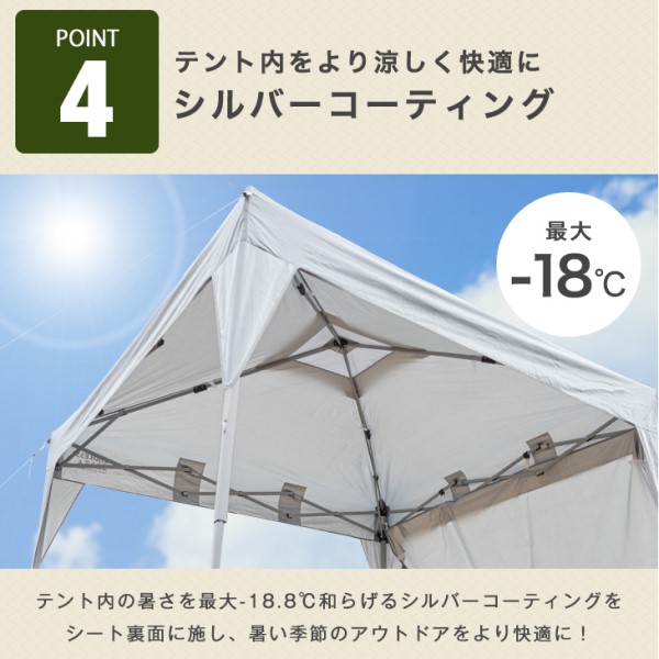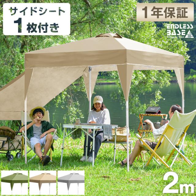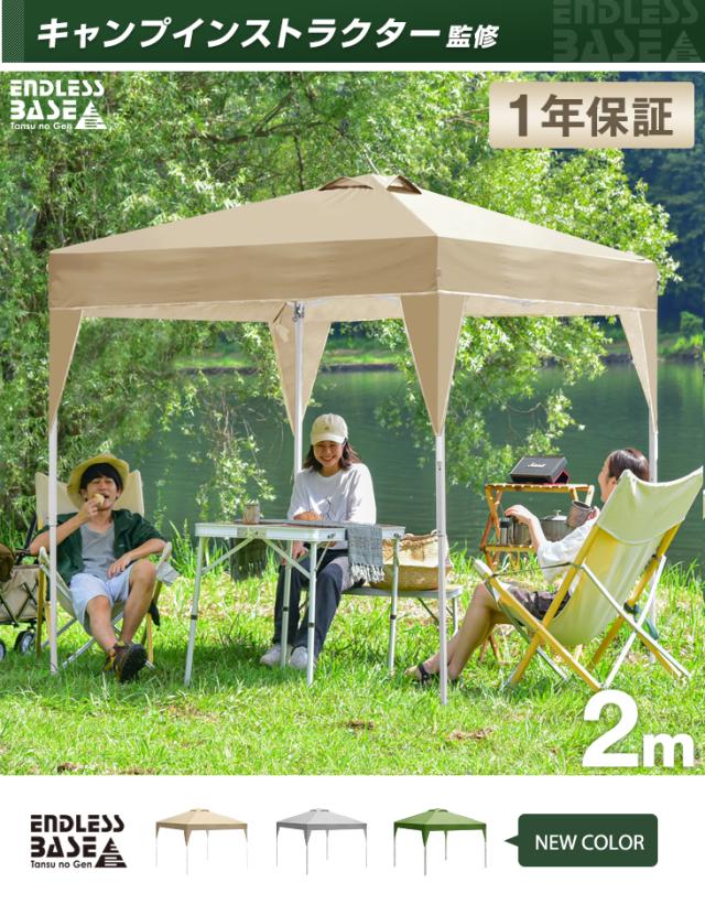 テント タープテント 2m ワンタッチ 1年保証 ベンチレーション 収納バッグ UV 耐水 高さ3段階 ワンタッチタープテント ワンタッチテント 大型 2m×2m バーベキュー キャンプ ベージュ グレー おしゃれ