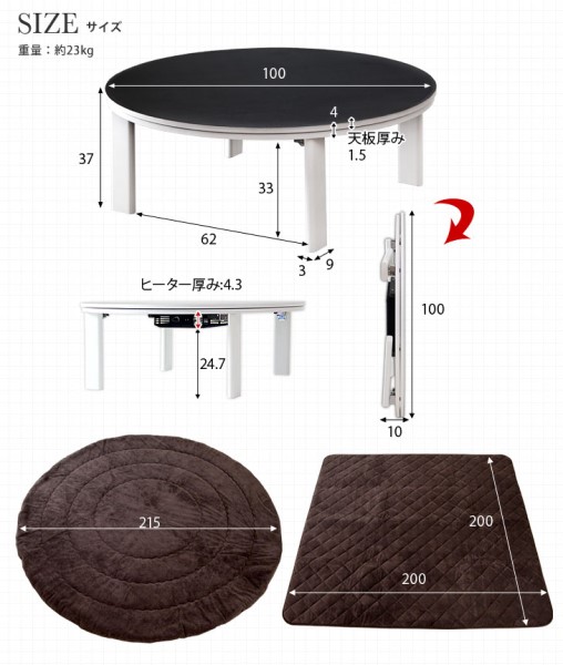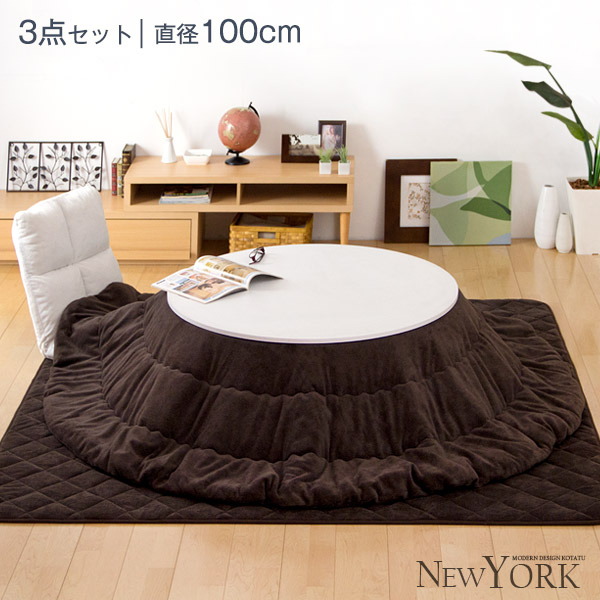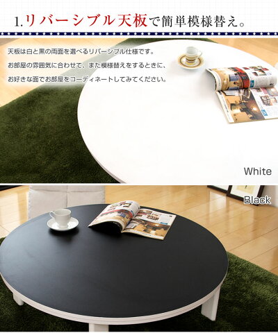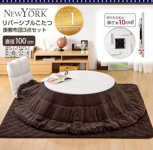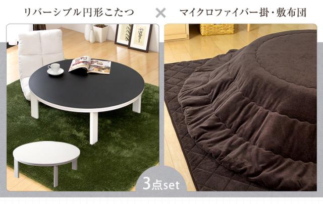 折り脚 リバーシブル天板 円形こたつ 3点セット こたつテーブル + 掛敷布団 幅100 こたつセット コタツテーブル 折れ脚テーブル 折れ脚こたつ 丸 丸型 フランネル 掛敷セット 掛布団 敷布団 おしゃれ モダン 白 黒【商品番号:68140060】