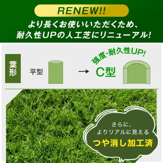 | 人工芝の汚れの対処方法 | 汚れが気になったら、水洗い・モップでのこすり、掃除機でのごみの除去等でご対応ください。 ※こちらの商品は、2017年9月26日にジョイント部分まで含めた厚みを2.5cmから3.5cmへ変更しました。そのため、既に使用している人工芝に新しい人工芝を繋げて使用する際、上手く繋がらない場合もございますので、予めご了承ください。 | |