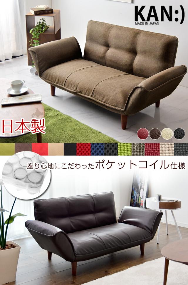 日本製 二人掛け ポケットコイル ソファ KAN 2P 2人 リクライニング カウチソファ カウチソファー ローソファー 2人掛け シンプル ソファー 2人用 おしゃれ 国産 送料無料