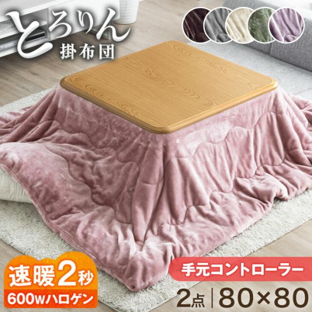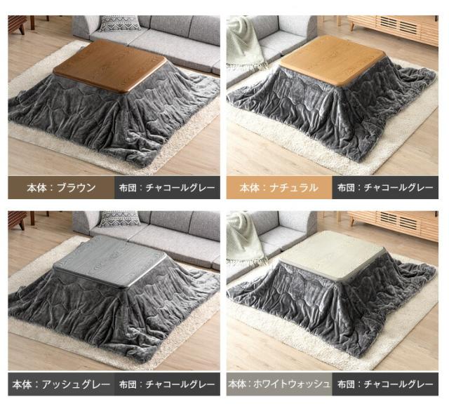 速暖2秒! こたつ 2点セット 高さ調節 600Wハロゲン こたつ + 洗える 掛布団 80×80 正方形 家具調 こたつセット シンプル 北欧 おしゃれ 無地 フランネル あったか 冬