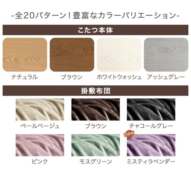 速暖2秒!600Wハロゲン こたつ2点セット こたつ + 洗える 掛布団 80×80 正方形 家具調 こたつセット シンプル 北欧 おしゃれ 無地 フランネル ブラウン ベージュ グレー ピンク 北欧