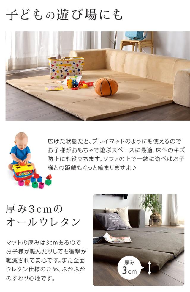 洗濯OK 日本製 フロアマット付きソファ ソファ ワイド 2人掛け 3人掛け 折りたたみ フロアマット カバーリング ロータイプ リビング 座椅子 ベット 子ども プレイマット【商品番号:44030064】