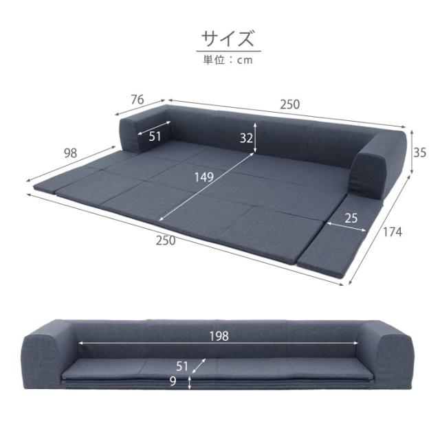 ■サイズソファ時:幅250cm×奥行76cm×高さ35cm