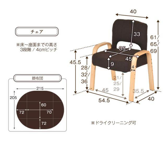 外寸:幅45×奥行45×高さ61〜69cm