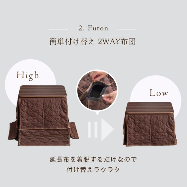 パーソナルこたつ 4点セット 2WAY 高さ調節 70×60 こたつセット 高脚 こたつ ハイタイプ ロータイプ デスク パソコンデスク リクライニング チェア セット 高脚コタツ 高脚こたつ こたつテーブル あったか 冬