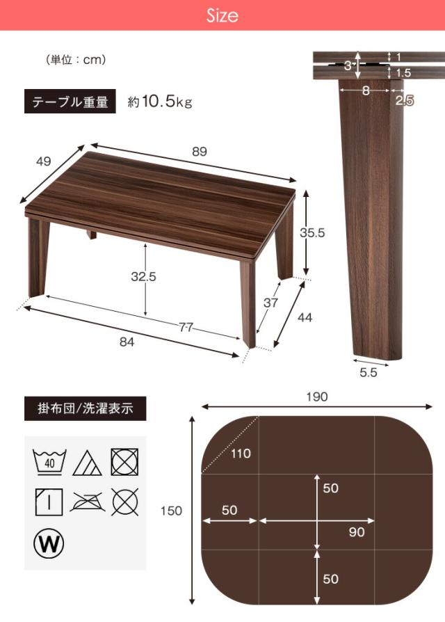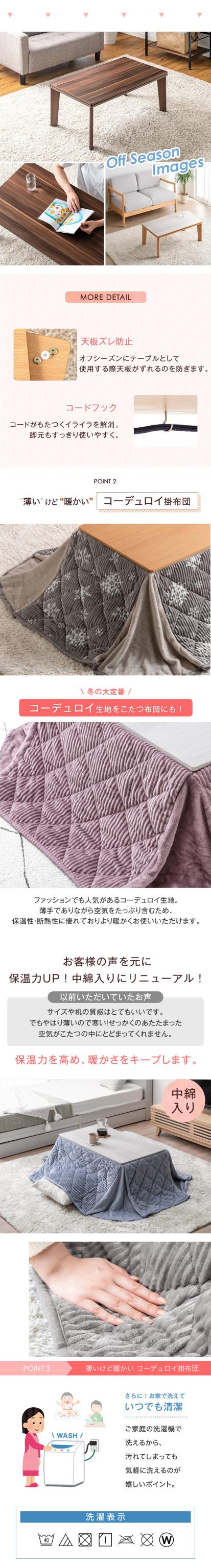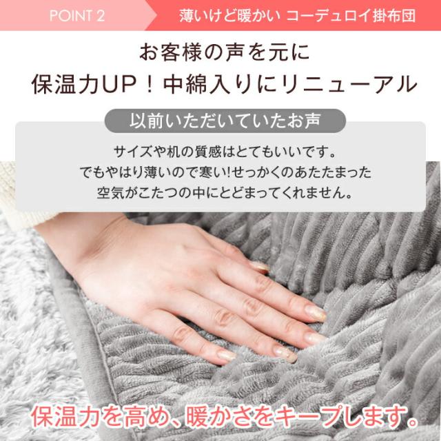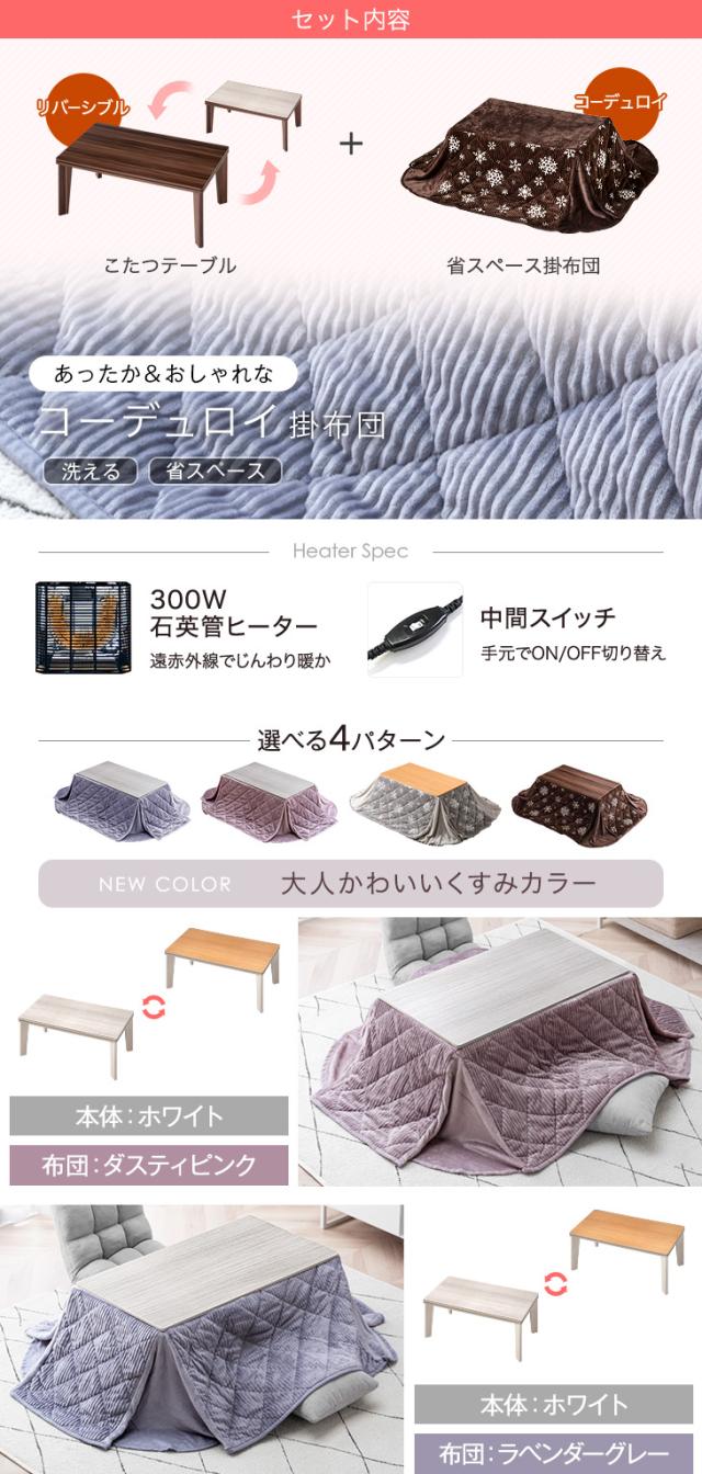 置き場所を選ばないコンパクトサイズ! カジュアルこたつ 2点セット 89×49 コーデュロイ 掛布団 + こたつテーブル 省スペース コタツ こたつセット おしゃれ 木目調 一人暮らし