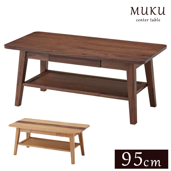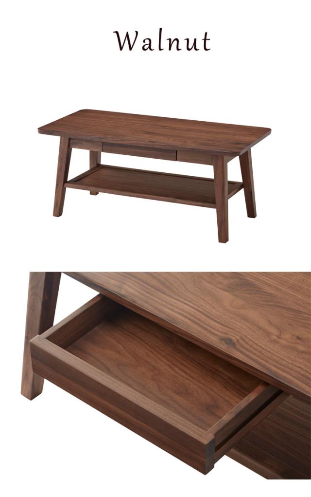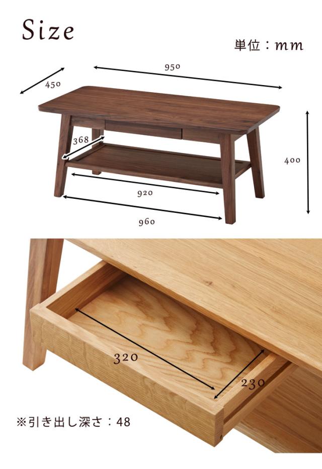 無垢 テーブル 95 cm ローテーブル 四角 長方形 ウォールナット オーク リビングテーブル センターテーブル 北欧 モダン コンパクト 棚 引き出し付【商品番号:48010001】