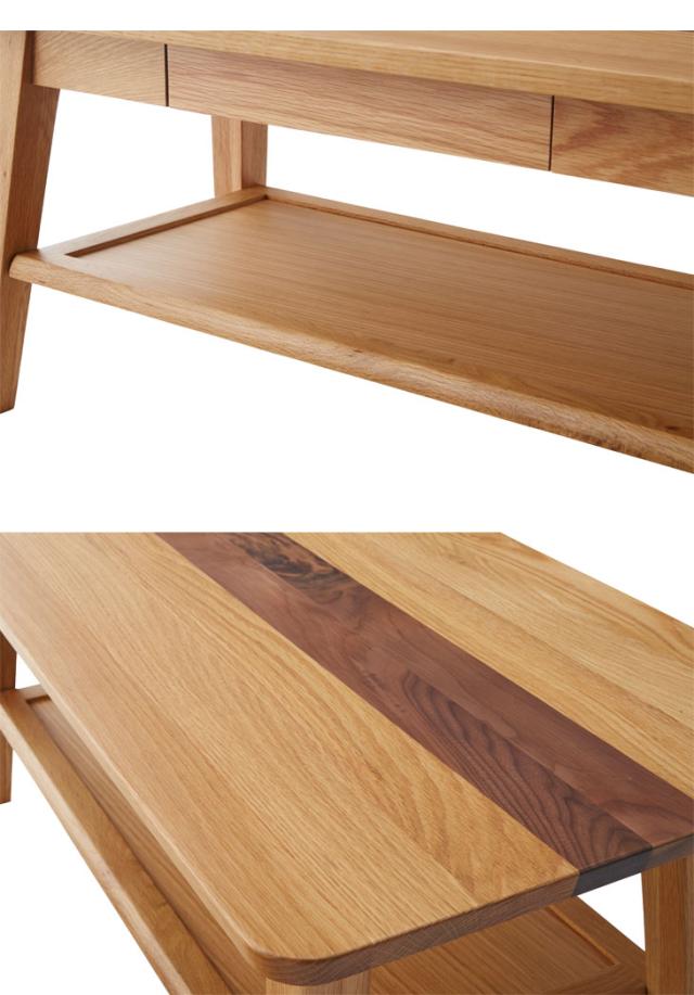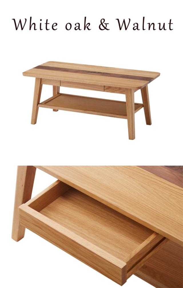 センターテーブル ウォールナット オーク 無垢 95 cm 棚 引き出し付 ローテーブル ウォールナット オーク 無垢材